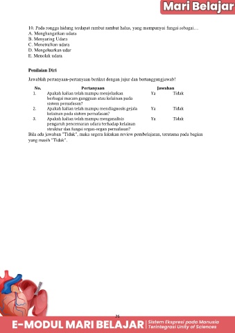 10. Pada rongga hidung terdapat rambut rambut halus, yang mempunyai fungsi sebagai…