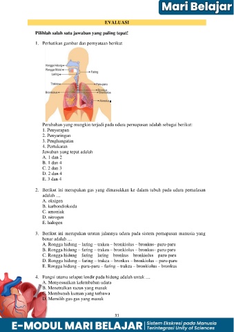 3. Berikut ini merupakan urutan jalannya udara pada sistem pernapasan manusia yang