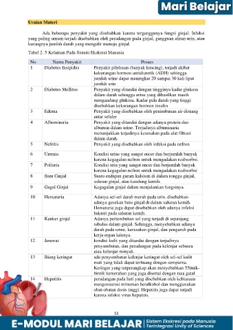 Tabel 2. 5 Kelainan Pada Sistem Ekskresi Manusia