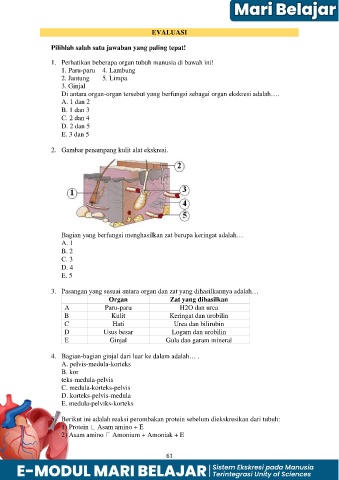 Di antara organ-organ tersebut yang berfungsi sebagai organ ekskresi adalah….