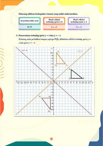 Sekarang anda perhatikan bangun segitiga PQR, dilakukan refleksi terhadap garis    =