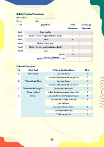 No Jenis Soal Kriteria Jawaban Siswa Skor