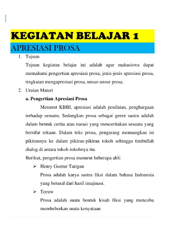 tingkatan mengapresiasi prosa, unsur-unsur prosa.