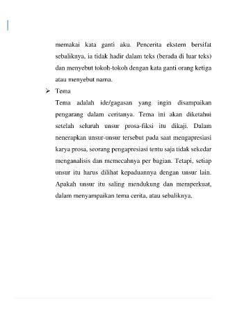 memakai kata ganti aku. Pencerita ekstern bersifat