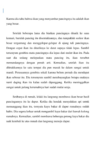 ikan sebesar itu. Dia tersenyum sambil membayangkan betapa enaknya