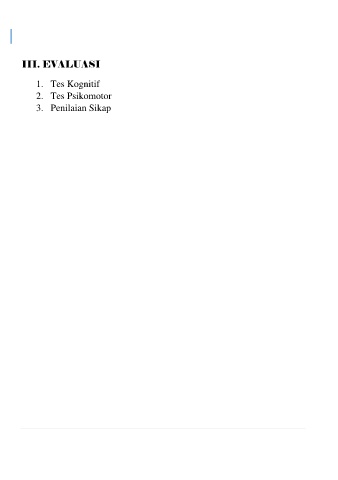 III. EVALUASI 1. Tes Kognitif 2. Tes Psikomotor 3. Penilaian Sikap