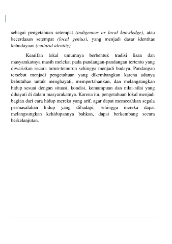 sebagai pengetahuan setempat (indigenous or local knowledge), atau
