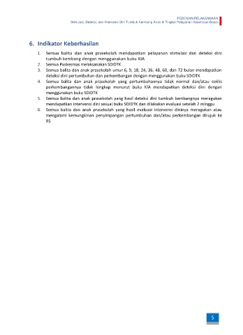 5. Semua balita dan anak prasekolah yang hasil deteksi dini tumbuh kembangnya meragukan