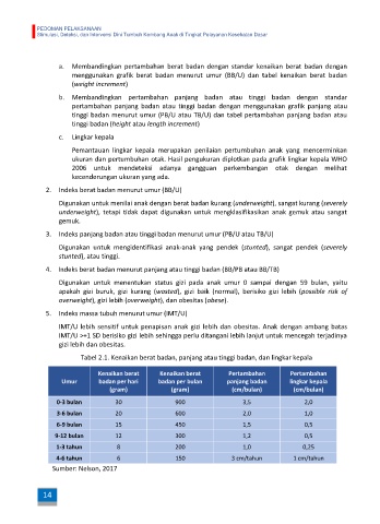 Tabel 2.1. Kenaikan berat badan, panjang atau tinggi badan, dan lingkar kepala