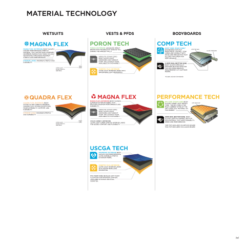 MAGNA FLEX: (EXTERIOR): BODY GLOVE'S HIGHEST PERFORMANCE STRETCH MATERIAL. 10% LIGHTER THAN STANDARD NEOPRENE, MAGNA FLEX TAKES ON LESS WATER WHILE PROVIDING MAXIMUM STRETCH AND PERFORMANCE.
