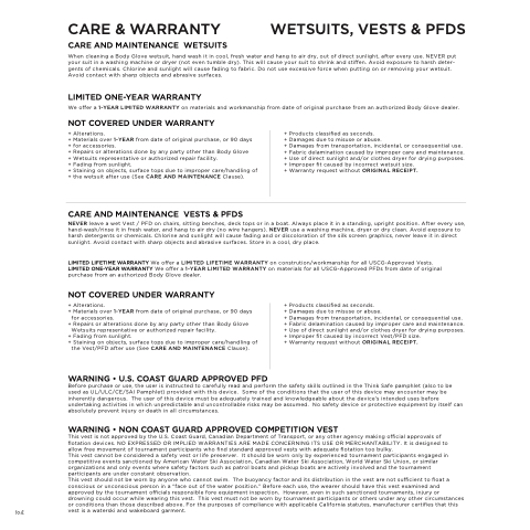 CARE & WARRANTY WETSUITS, VESTS & PFDS CARE AND MAINTENANCE WETSUITS