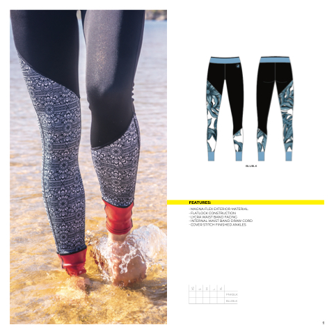 FEATURES: BLUBLK • MAGNA-FLEX EXTERIOR MATERIAL • FLATLOCK CONSTRUCTION • LYCRA WAIST BAND FACING • INTERNAL WAIST BAND DRAW CORD • COVER STITCH FINISHED ANKLES PNKBLK BLUBLK 11 XS S M L XL