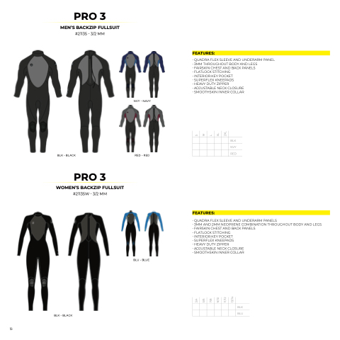 • 3MM AND 2MM NEOPRENE COMBINATION THROUGHOUT BODY AND LEGS • FAIRSKIN CHEST AND BACK PANELS