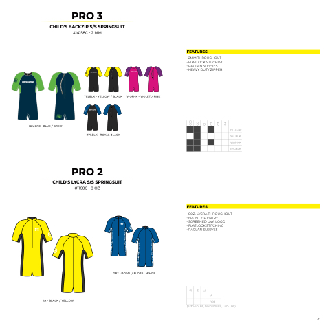 • 8OZ. LYCRA THROUGHOUT • FRONT ZIP ENTRY