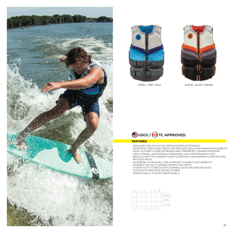 • EXTENDED, CONTOURED BODY FOR REDUCED BULK AND MAXIMUM FLEXIBILITY • DUAL US COAST GUARD APPROVED AND TRANSPORT CANADA APPROVED