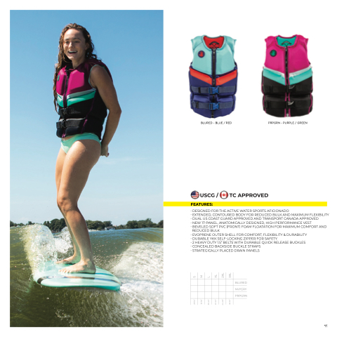 • EXTENDED, CONTOURED BODY FOR REDUCED BULK AND MAXIMUM FLEXIBILITY • DUAL US COAST GUARD APPROVED AND TRANSPORT CANADA APPROVED