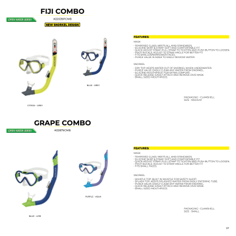 • DRY TOP: KEEPS WATER OUT OF SNORKEL WHEN UNDERWATER. • PURGE VALVE: EASILY CLEAR ANY WATER FROM SNORKEL.