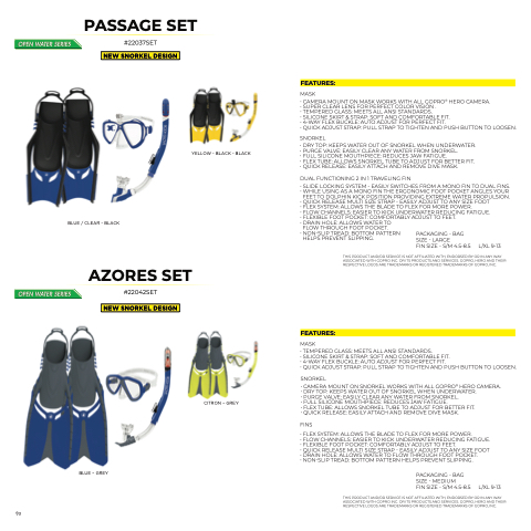 • CAMERA MOUNT ON SNORKEL WORKS WITH ALL GOPRO® HERO CAMERA. • DRY TOP: KEEPS WATER OUT OF SNORKEL WHEN UNDERWATER.