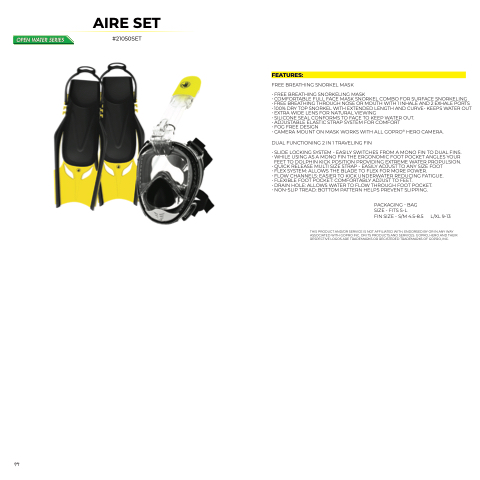 • FREE BREATHING THROUGH NOSE OR MOUTH WITH 1 INHALE AND 2 EXHALE PORTS • 100% DRY TOP SNORKEL WITH EXTENDED LENGTH AND CURVE- KEEPS WATER OUT • EXTRA WIDE LENS FOR NATURAL VIEWING