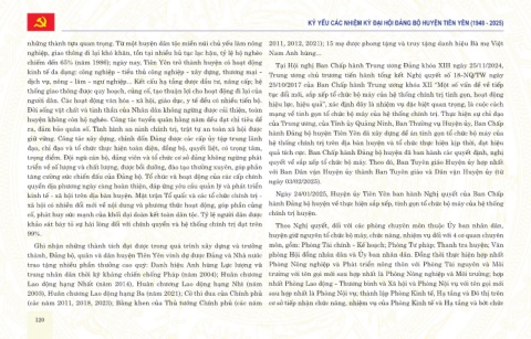 ra, đảm bảo quân số. Tình hình an ninh chính trị, trật tự an toàn xã hội được hành Đảng bộ huyện Tiên Yên đã xây dựng đề án tinh gọn tổ chức bộ máy của