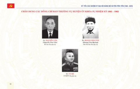 CHÂN DUNG CÁC ĐỒNG CHÍ BAN THƯỜNG VỤ HUYỆN ỦY KHÓA IV, NHIỆM KỲ 1961 - 1962