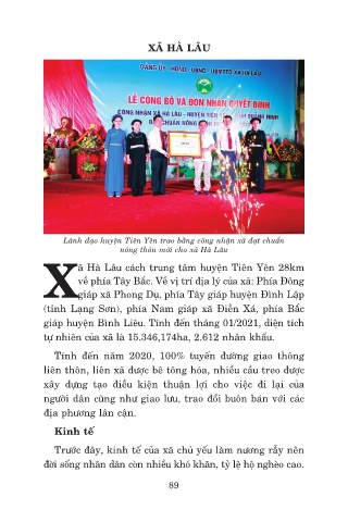 Laõnh ñaïo huyeän Tieân Yeân trao baèng coâng nhaän xaõ ñaït chuaån