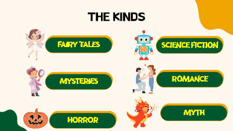 THE KINDS FAIRY TALES SCIENCE FICTION MYSTERIES ROMANCE MYTH HORROR