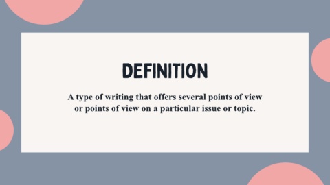 DEFINITION A type of writing that offers several points of view or points of view on a particular issue or topic.