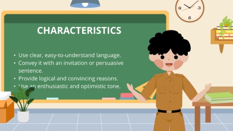 CHARACTERISTICS • Use clear, easy-to-understand language. • Convey it with an invitation or persuasive sentence. • Provide logical and convincing reasons. • Use an enthusiastic and optimistic tone.