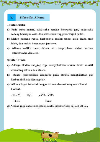 c) Alkuna dapat bereaksi dengan air membentuk senyawa alkanal.