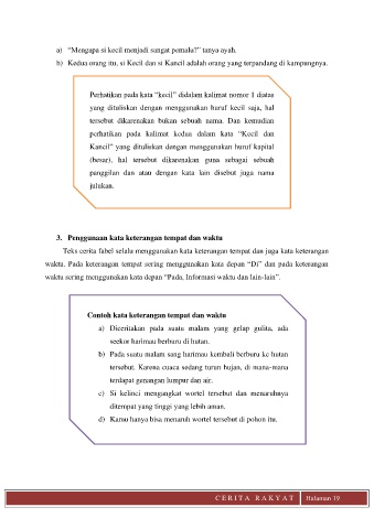 Teks cerita fabel selalu menggunakan kata keterangan tempat dan juga kata keterangan