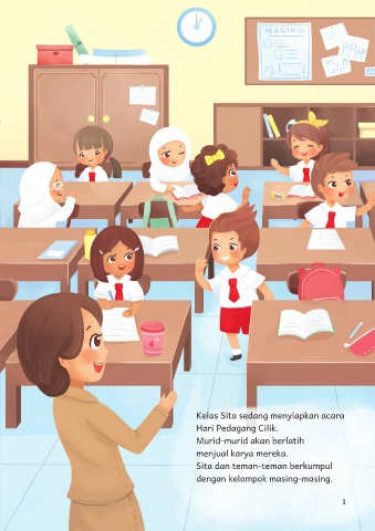 Kelas Sita sedang menyiapkan acara Hari Pedagang Cilik. Murid-murid akan berlatih menjual karya mereka. Sita dan teman-teman berkumpul dengan kelompok masing-masing. 1