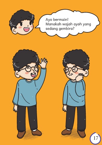 Jika malam tiba, ayah mendongeng untukku. Aku mulai mengantuk, ayah selalu menciumku. Aku sayang ayahku. Ayo bermain! Manakah wajah ayah yang sedang gembira? Aku sayang ayahku. 17 15 16