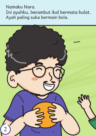 Namaku Nara. Ini ayahku, berambut ikal bermata bulat. Ayah paling suka bermain bola. Paling suka bermain bola. Namaku Nara. Ini ayahku, berambut ikal bermata bulat. Paling suka bermain bola. Aku sayang ayahku. Aku sayang ayahku. 1 2 2 1 2