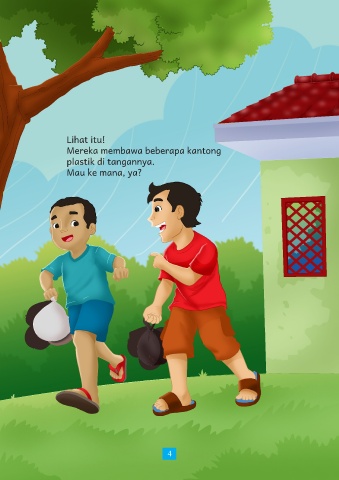 Lihat itu! Mereka membawa beberapa kantong plastik di tangannya. Mau ke mana, ya? 4