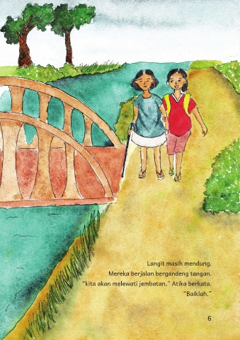 mengenali tempat,” kata Santi. “kita akan melewati jembatan,” Atika berkata.