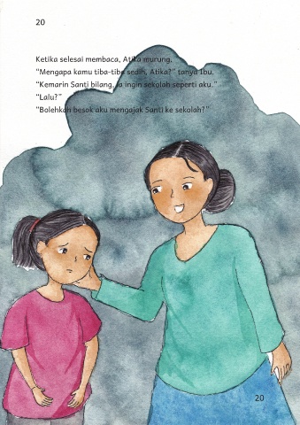 “Kemarin Santi bilang, ia ingin sekolah seperti aku.”