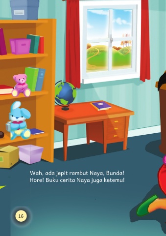Wah, ada jepit rambut Naya, Bunda! Hore! Buku cerita Naya juga ketemu! 16