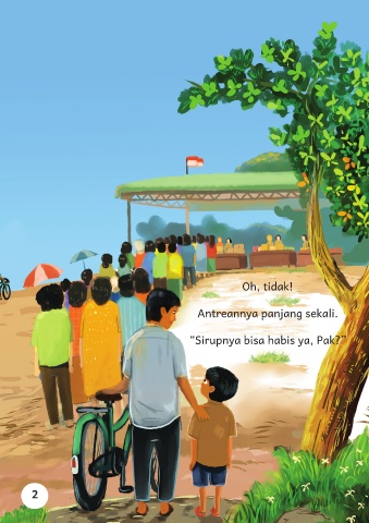 Oh, tidak! Antreannya panjang sekali. “Sirupnya bisa habis ya, Pak?” 2 2