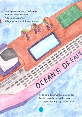 Kapal pesiar serupa hotel megah. Kamar-kamar berjajar. Ada kolam renang. Ada juga sarana olahraga lainnya. Toko-toko dan swalayan juga ada. Tak ketinggalan arena bermain. Jika lapar, datang saja ke restoran. 7