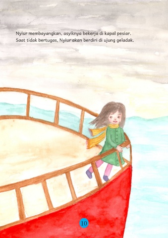 Nyiur membayangkan, asyiknya bekerja di kapal pesiar. Saat tidak bertugas, Nyiur akan berdiri di ujung geladak. 10