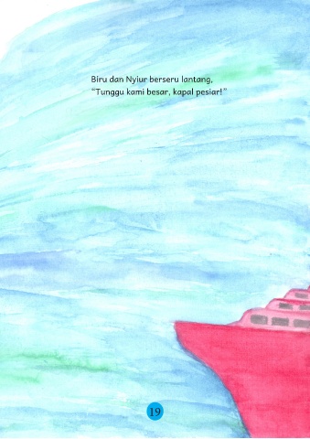 Biru dan Nyiur berseru lantang, “Tunggu kami besar, kapal pesiar!” 19