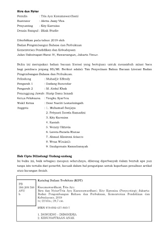 AYU Biru dan Nyiur/Tria Ayu Kusumawardhani; Kity Karenisa (Penyunting); Jakarta: