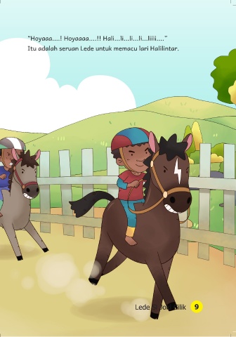 “Hoyaaa....! Hoyaaaa....!! Hali...li...li...li...liiii....” Itu adalah seruan Lede untuk memacu lari Halilintar. Lede Si Joki Cilik 9