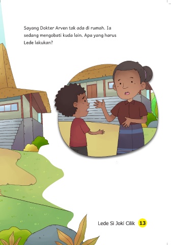 Sayang Dokter Arven tak ada di rumah. Ia sedang mengobati kuda lain. Apa yang harus Lede lakukan? Lede Si Joki Cilik 13