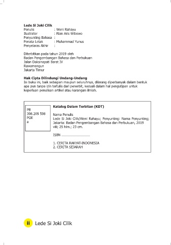 POE Lede Si Joki Cilik/Weni Rahayu; Penyunting: Nama Penyunting;