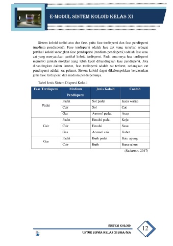 (medium pendispersi). Fase terdispersi adalah fase zat yang tersebar sebagai