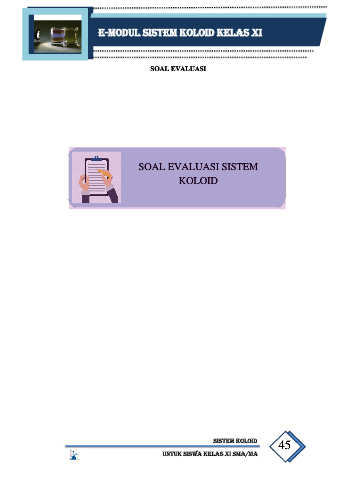 E-MODUL SISTEM KOLOID KELAS XI SOAL EVALUASI SOAL EVALUASI SISTEM KOLOID SISTEM KOLOID 45 UNTUK SISWA KELAS XI SMA/MA