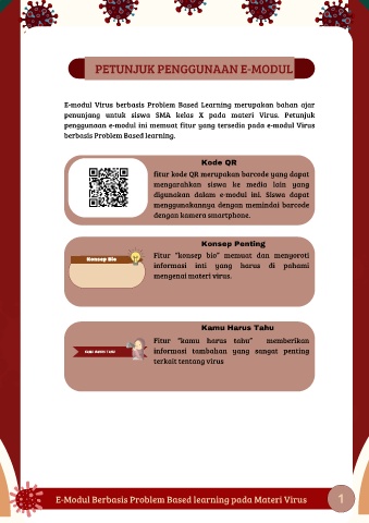 penggunaan e-modul ini memuat fitur yang tersedia pada e-modul Virus