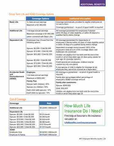 Dependent coverage cannot exceed 100% of the employee’s total amount of life coverage (Basic and Additional Life combined)